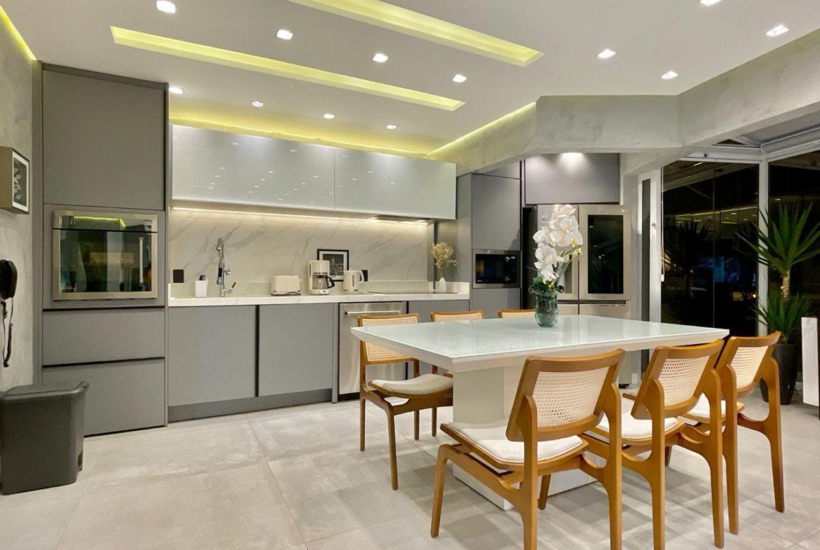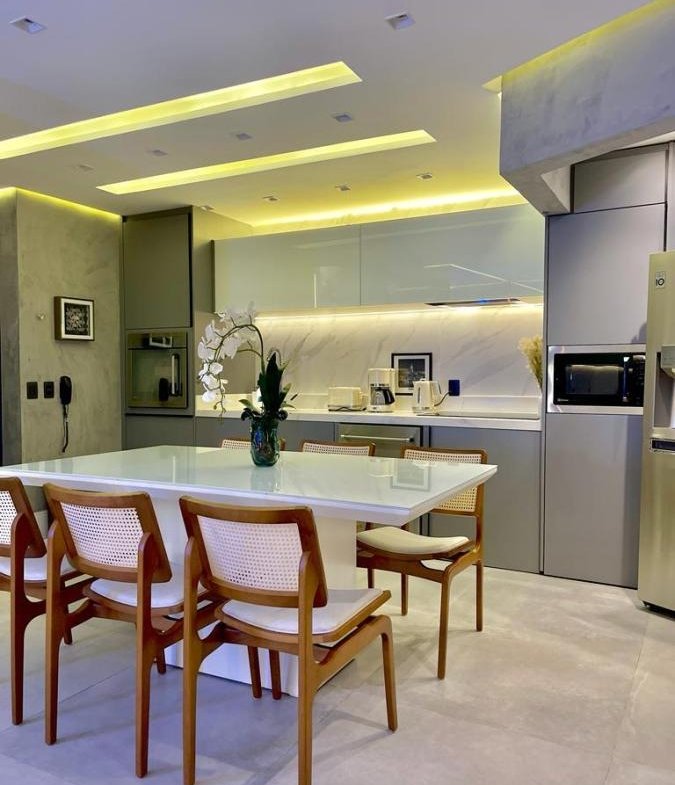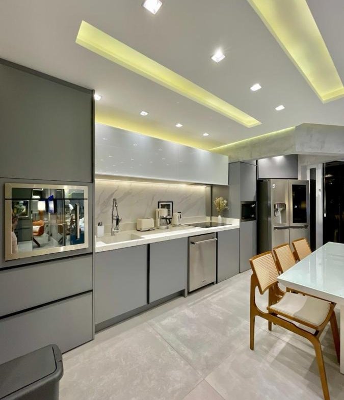 1 cozinha, 1 sala de TV, 1 sala de Jantar, 1 Sacada e 2 vagas de garagem.