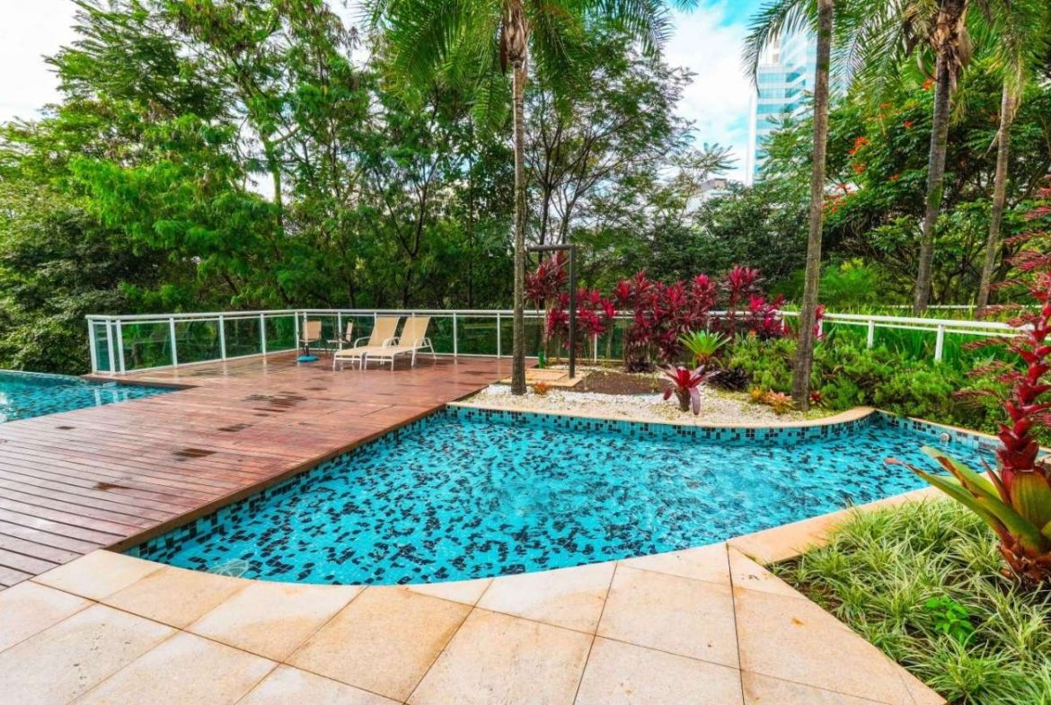 Andar alto com vista livre, garantindo privacidade e uma paisagem incrível, Piso em madeira, trazendo aconchego e elegância para todos os ambientes, living integrado com varanda gourmet, ideal para receber amigos e família, Condomínio completo com lazer de alto padrão, segurança 24h e localização privilegiada no coração de Alphaville.