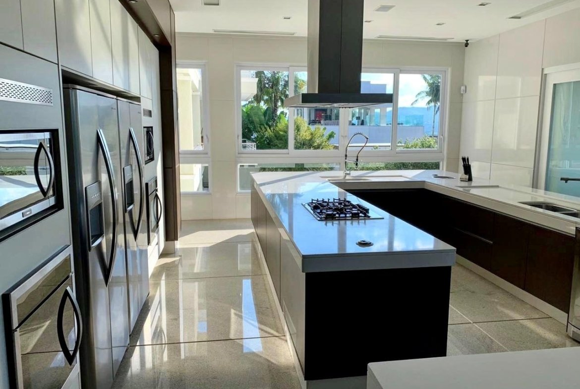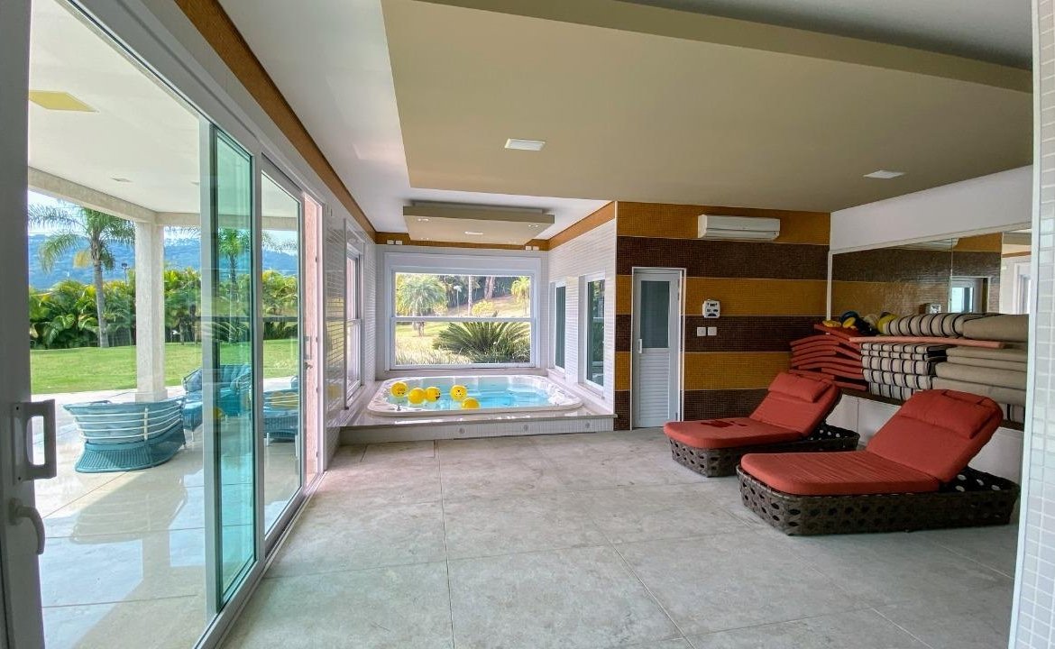 A casa tem Reservatório de água pressurizada com 40.000litros, Caixas-d’água, Sistema de retorno automático de água quente, Filtros e bombas de piscina Jacuzzi, Pastilhas da piscina da marca Jatobá, SPA com cromoterapia e 11 lugares, Janelas elétricas tipo “guilhotina” no Spa, Churrasqueira completa, com choperia, pias em Silestone , gabinetes e armários Ornare e balcão em Silestone, Sauna com chuveiro frio, Banheiras com cromoterapia em todas as suítes, desembaçadores de espelhos nos banheiros das suítes, metais e chuveiros Fani, box com vidros temperados, Piso das Áreas Nobres e Banheiros, mármore Aglostone, piso do Salão de festa, Cozinha e Lavandeira: Granito Branco Itaúnas, Piso das Áreas Externas, Garagem, Varandas e Área de Lazer: Granito Flameado Giallo Vitória, Moveis Breton e Brentwood, Iluminação PuntoLuce, Iluminação e cortinas automatizadas Sistema Control4, Infraestrutura para Gerador de energia, Porta Social Automática com senha, Ar-condicionado em todos os ambientes, cascata interna, piscina aquecida com Iluminação em LED, Irrigação automatizada nos jardins e Caixilharia em PVC com isolamento térmico e Acústico.