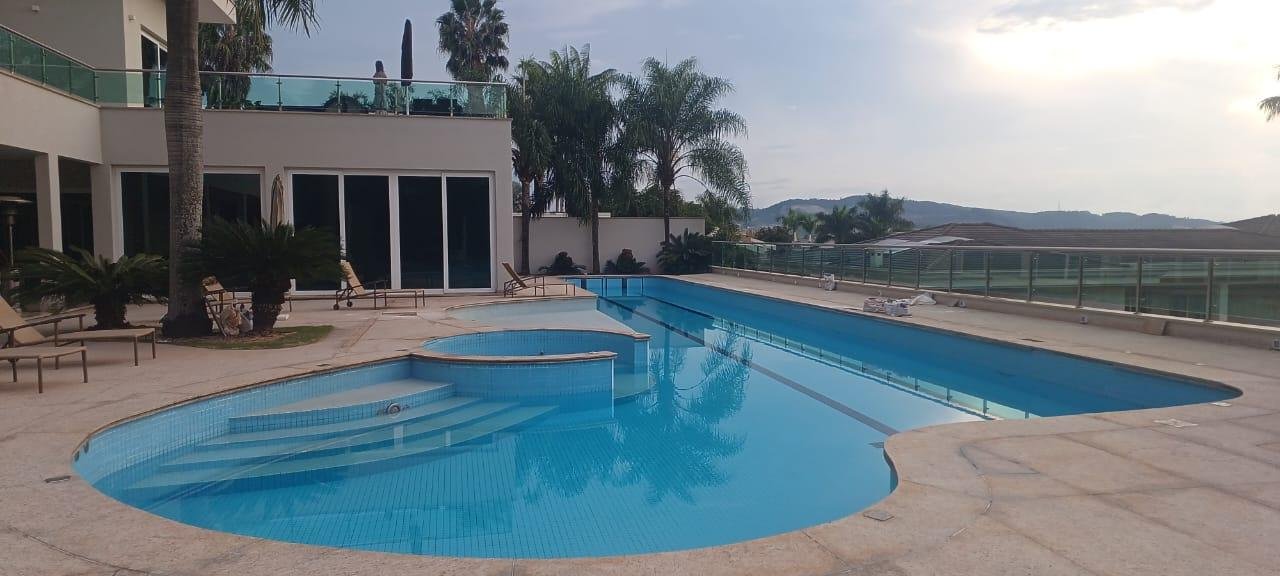 Casa no Residencial Tamboré 2 Alphaville, Mobiliada, com 2.000 m2 de área construída, 2.119 m2 de terreno, 5 Suítes completas com banheiros e gabinetes e Closets da marca Ornare, Closets da marca Ornare, armários da lavanderia da marca Ornare, paredes dos banheiros das suítes totalmente marmorizadas, cubas confeccionadas em mármore em todos banheiros e lavabo social, gabinetes completos em todos os banheiros da marca Ornare, Pisos Aquecidos nos banheiros das suítes, com termostato digital programável, Piso dos quartos e closets :Taco de madeira 0,10 x0,40, 1 apartamento de hospedes isolado da área íntima com copa, lareira da sala em mármore Travertino Romano, com lareira a gás tipo ”filete”, cozinha totalmente marmorizada com armários da marca Ornare, com os acessórios, tampos das bancadas em Silestone e Torneiras tipo “Chef”, adega completa, Bar do salão e Gourmet com armários da marca Ornare, tampos em Silestone e Granito, persianas 100% Blackout automáticas e com controle remoto, câmeras por toda a residência com gravação, aspiração Central marca Hayden, Elevador da marca Thyssenkrupp, Sistema FOTOVOTAICO-Aquecedor solar e 2 garagens com portas automáticas para 8 carros.