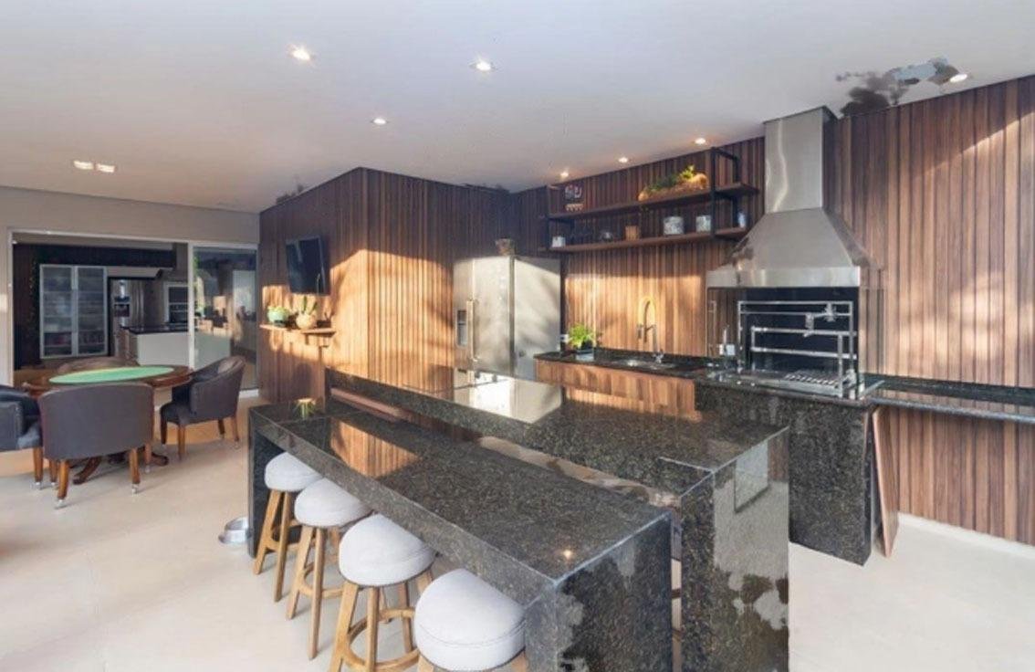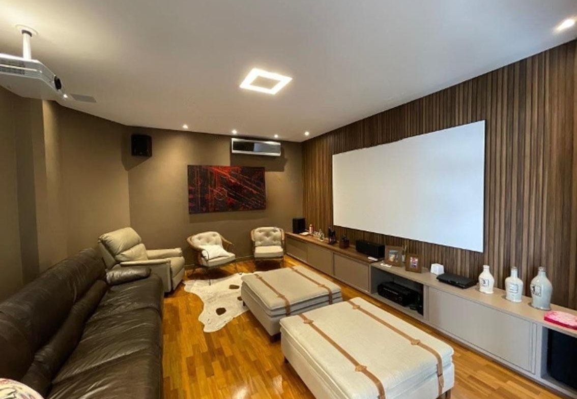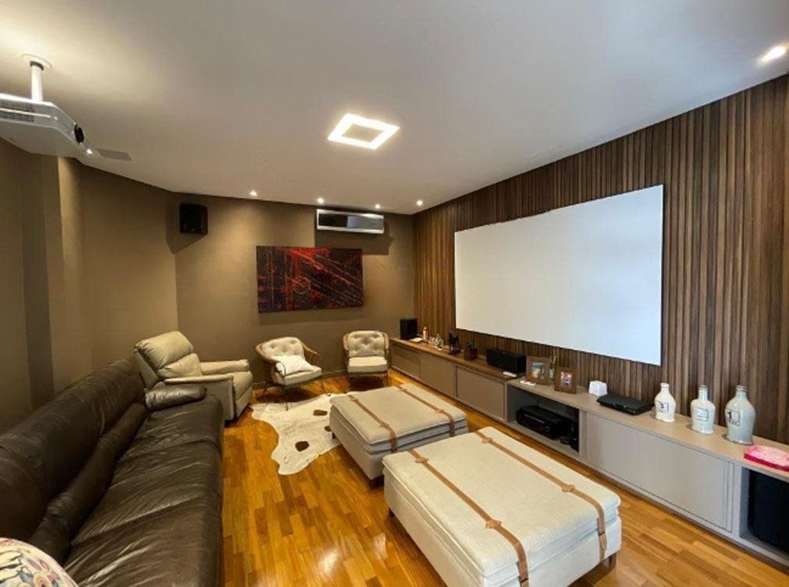 📌Home Theater, Sala fitness no subsolo, escritório, sala com lareira, cozinha planejada com área gourmet externa e Garagem para 06 carros cobertos.