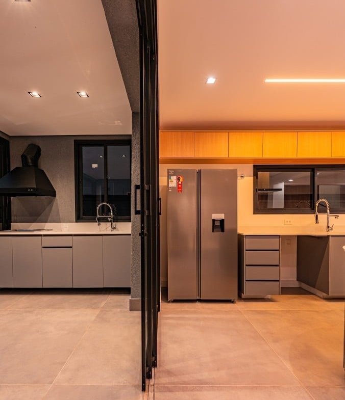 - Depósito/Despensa oculto pelo mesmo painelripado com fechadura fecho toque