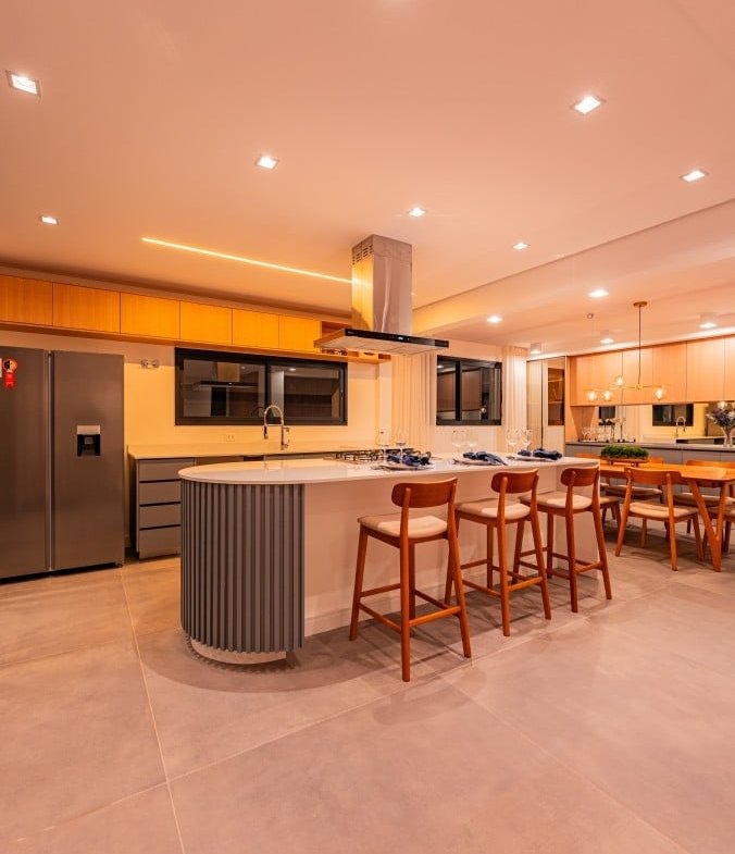 - Cozinha estilo americana, com ilha gourmettotalmente equipada