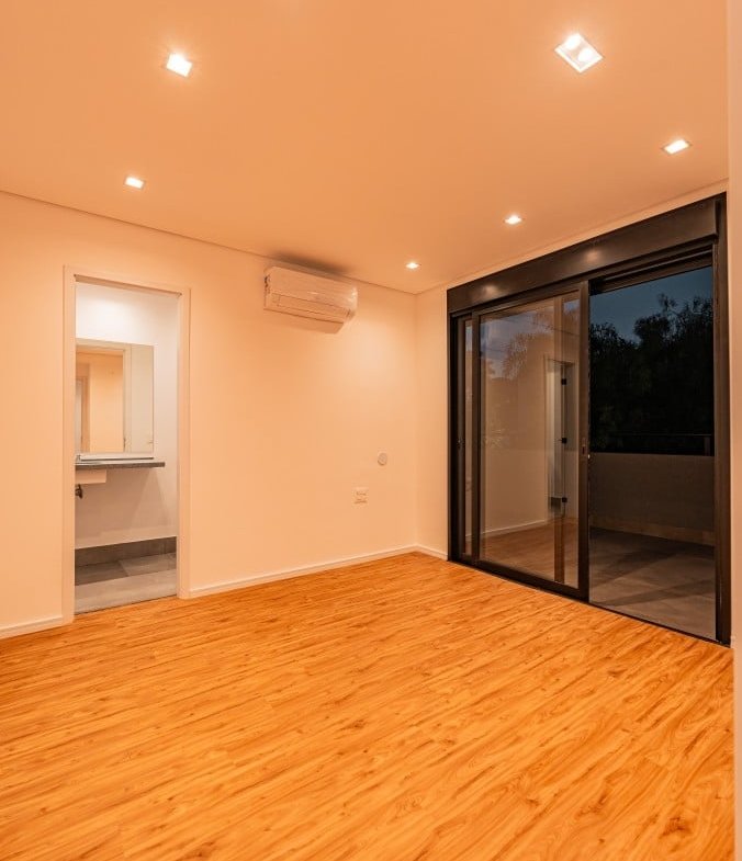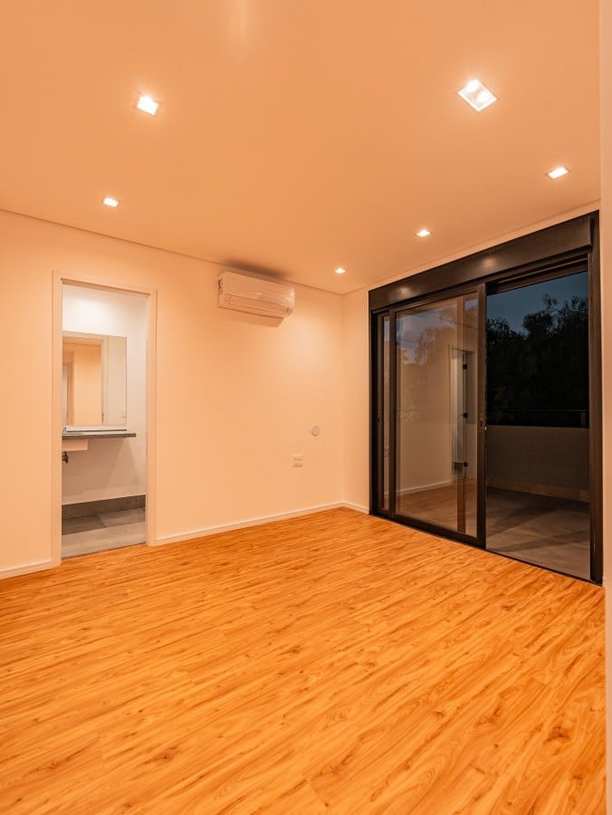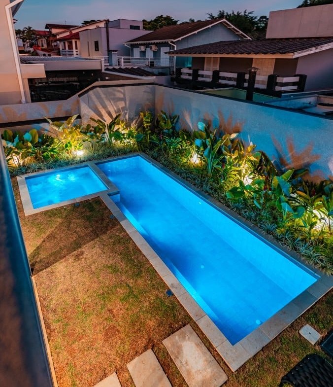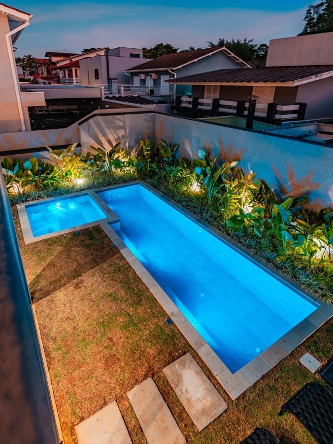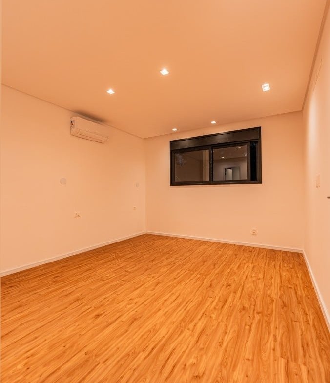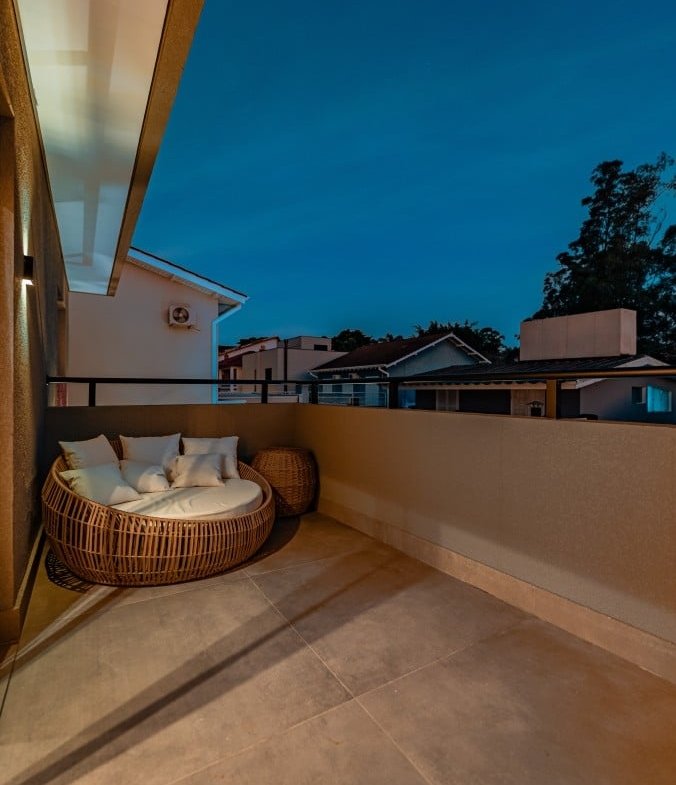 - 4 suítes, sendo uma térrea reversível para escritório, umasuíte máster (com terraço, closet amplo, banheiro com duas cubas, ducha dupla). Todas equipada com persianas blackout automatizadas através de controle remoto e ar condicionado